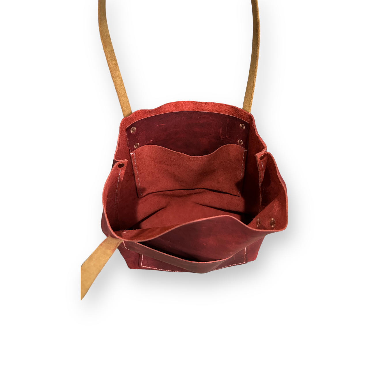Functionality meets elegance with an exterior pocket for easy access to your essentials and an interior pocket to keep smaller items organized. The straps, made from vegetable-tanned leather, are stained and finished with a smooth and polished look that perfectly complements the bag's bold color.