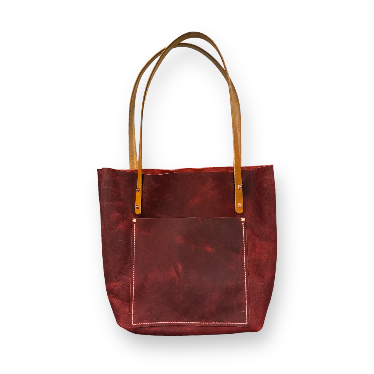 Make a statement with the Rosedale Tote, where timeless craftsmanship meets contemporary style. This tote is crafted from premium red Kodiak oil-tanned leather, offering both durability and a striking visual appeal.