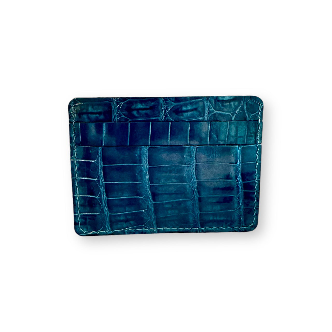 Experience the elegance and sophistication of the 3 slot cardholder wallet, handcrafted from Grade A Porosus crocodile tail leather in a stunning Glazed Emerald, Glazed Sapphire, or Glazed Deep Blue finish. This wallet showcases the unique texture and luxurious sheen of top-grade crocodile leather, offering both durability and a refined look.